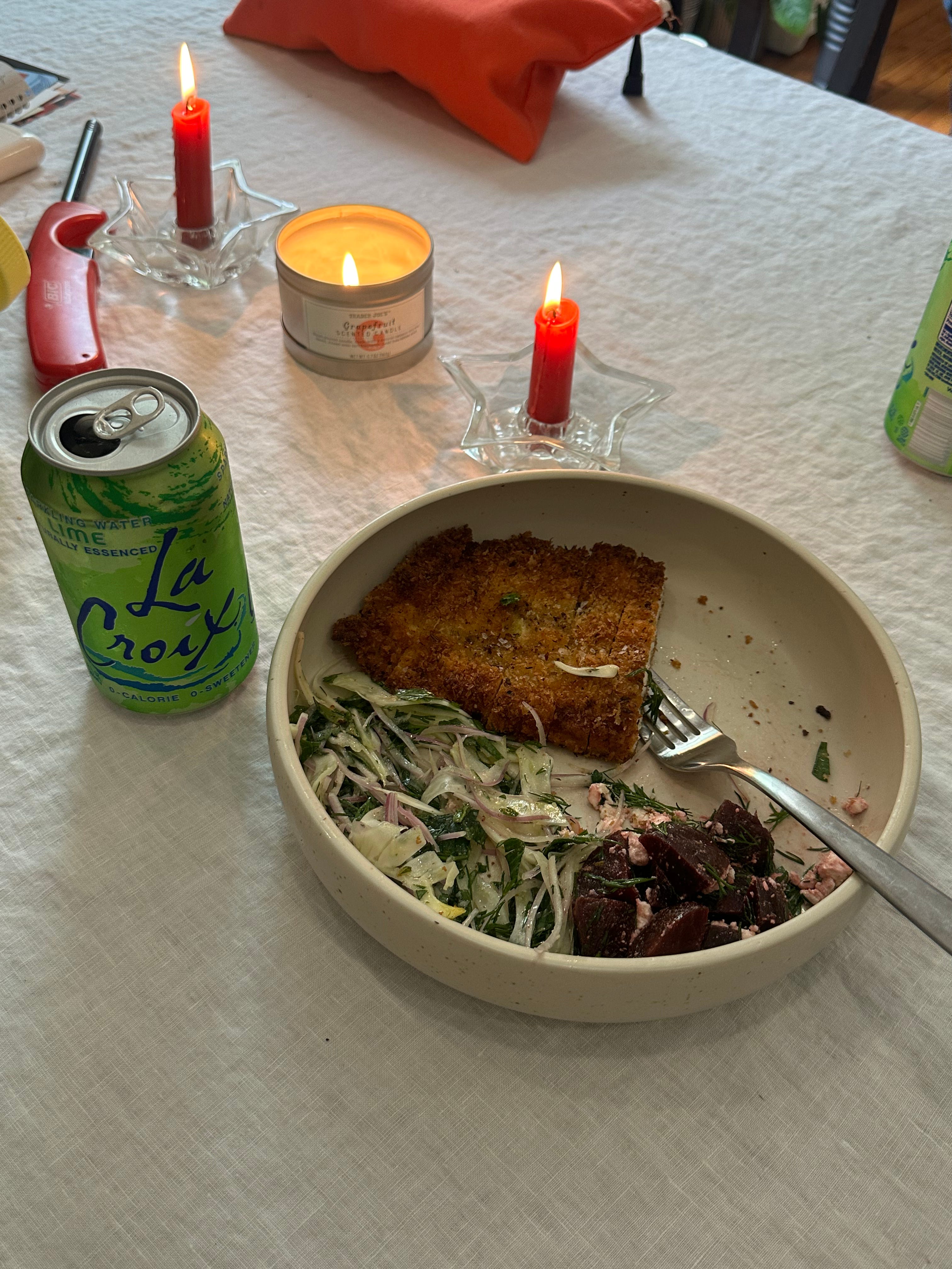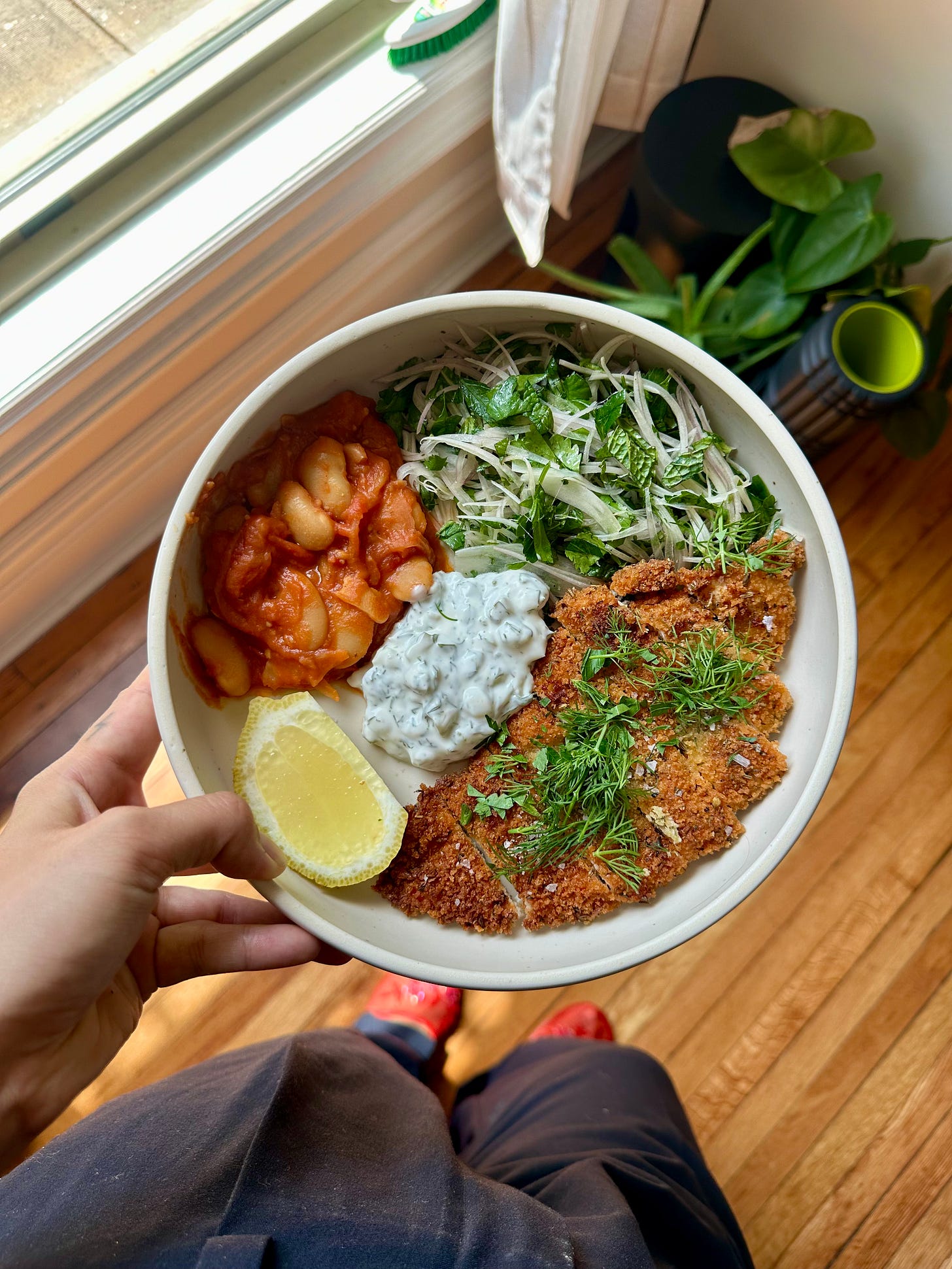 We officially breaking out of our vegetarian streak & starting with panko-crusted Crispy Chicken Cutlets, one of my childhood favorites. I usually associate these with more of a wintery vibe since they're classically paired with spaghetti & red sauce. However, since we're approaching summer, I thought it would be more appropriate to pair this with a couple of light & bright herby salads.